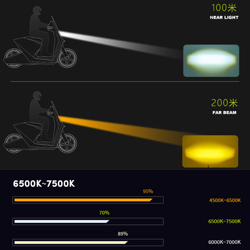 2. Two-color LED chip, free switching of light color: built-in 7035 high-brightness two-color LED, to cope with different weather and road conditions.
