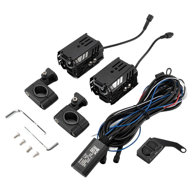 Comes with plug-and-play connectors, including ACC positive and negative wiring, horn flash control line, and secure mounting accessories. Suitable for a wide range of motorbikes with standard headlamp sockets.