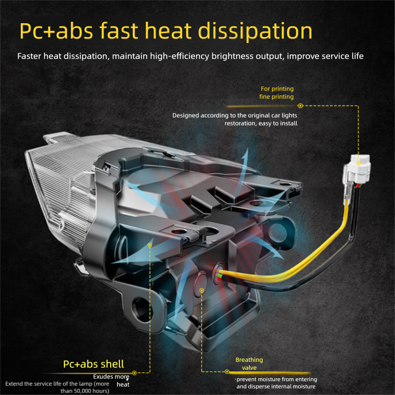 Made of durable PC+ABS material, the shell is sturdy and resistant to falling, and equipped with a breathing valve system to prevent water vapor accumulation and fogging. It also has IP65-level waterproof and dustproof capabilities. Even in bad weather such as rainy days, foggy days or car wash environments, it still works stably without flickering.