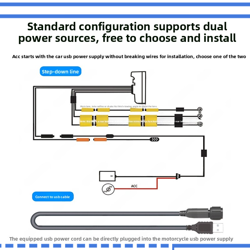 Supports ACC on-board start and USB cable-free installation dual-mode power supply, easy installation; supports 8GB to 256GB storage expansion, H.264 video format efficient compression, long-term recording without worry.